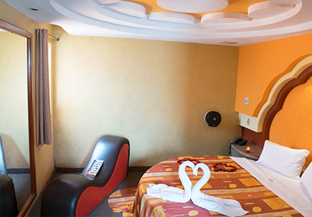 Contamos con 6 tipos de habitaciones con todas las amenidades que tú y tu pareja merecen, todas ellas con cochera ubicadas al oeste de la ciudad.