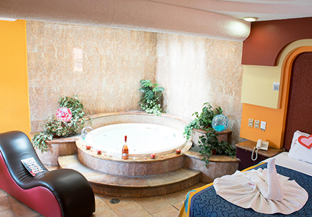 Todo lo que necesitas para una velada inolvidable. Cuenta con Garage, Baño Completo Remodelado, Sillón Esquinero, Sillón Tántrico, Amplios Espejos, Jacuzzi, Mesa de Servicio, Pantalla LED con Sky y Cama King Size.