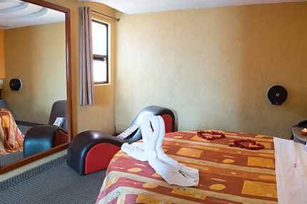 Una de nuestras suites mas divertidas y sensuales, disfruta de posiciones mas creativas en nuestra cama totalmente redonda.